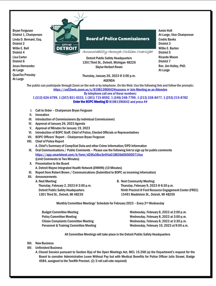 Chair Ferguson is saying if any protests happen in Detroit, he asks they be peaceful and follow police orders. (I’m not sure what he’s anticipating protests around—gun violence maybe?)