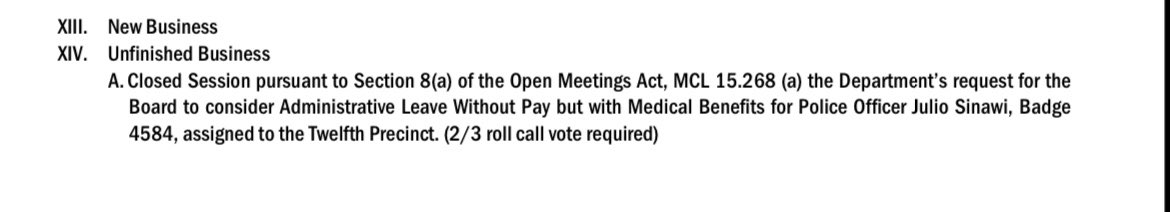 Chair Ferguson is making a correction, about the closed session. Change is: 8a Open Meetings act MCL 15.268 (h) https://t.co/hJIFUqm6r1