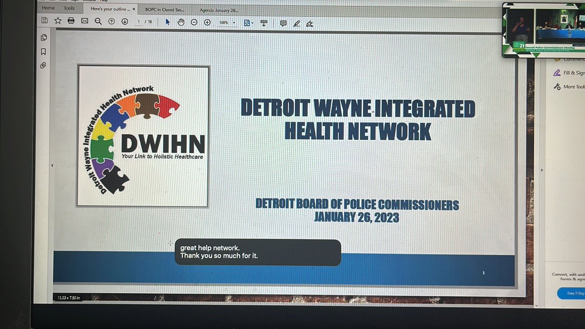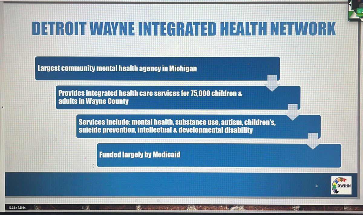 The agenda says we’ll be listening to a presentation on Detroit Wayne Integrated Health Network.