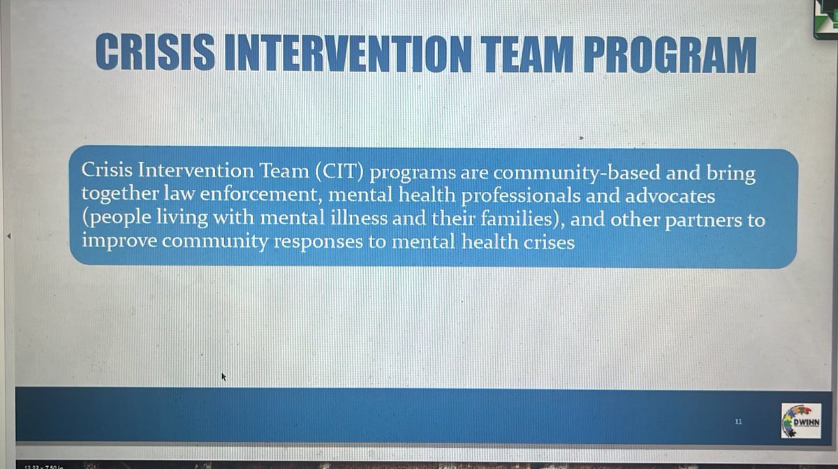 Commissioner Pressley is asking about the CIT program, wondering if there’s a component where community citizens can learn crisis intervention training to help work mitigate issues in their own neighborhoods.